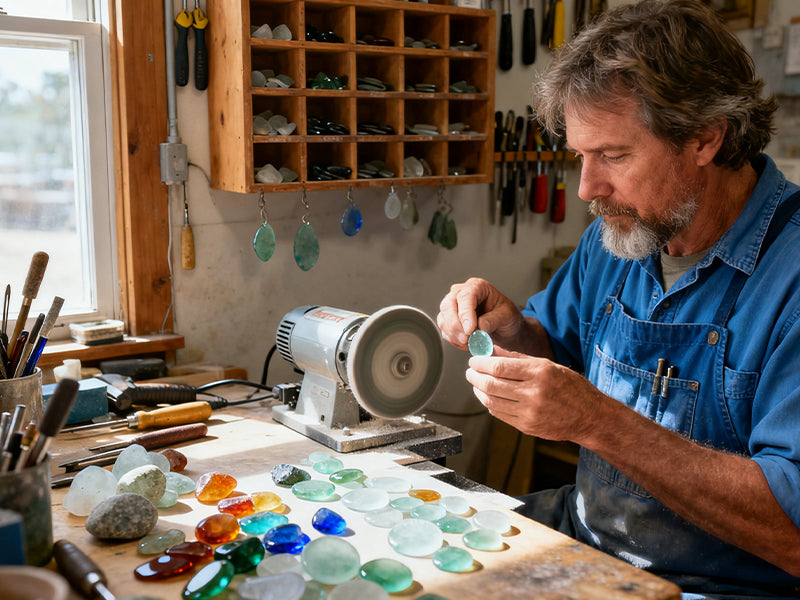Stellen Sie sich nun vor: Jeder dieser Schätze stammt direkt vom Meer – glattes, schimmerndes Seeglas, vom Ozean geformt und liebevoll zu winzigen Weihnachtsbäumchen verwandelt. Jedes einzelne leuchtet im warmen Schein Ihrer Lichterkette und bringt einen Hauch von Küstenzauber in Ihr Zuhause.
