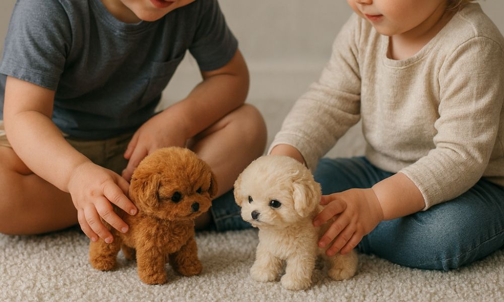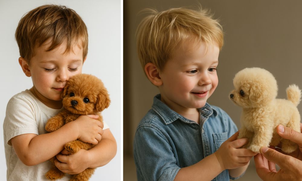 In einem kleinen Atelier zwischen Olivenhainen und Zypressen entstand etwas, das die Herzen vieler Familien im Sturm erobert: ein lebensechter Plüschhund, der sich bewegt, reagiert, bellt und sich dabei anfühlt wie ein echter kleiner Freund. Ein Hund, der Nähe schenkt – und genau das bietet, was vielen Kindern heute fehlt.
