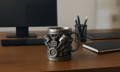 Als das Licht auf die Tasse fiel, schimmerte das matte Metallgrau, und die kleinen Details – Zahnräder, Schrauben, Ventile – wirkten fast lebendig.