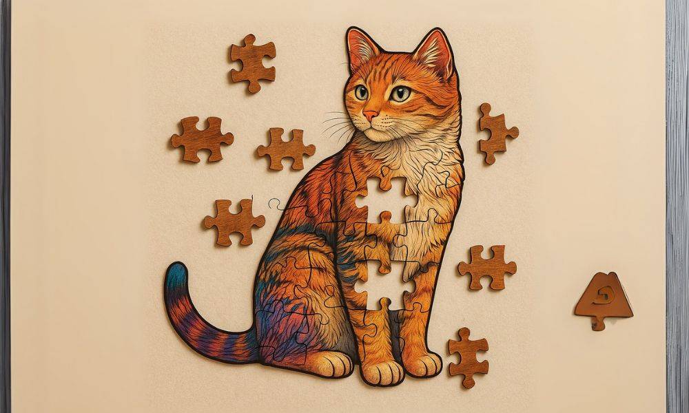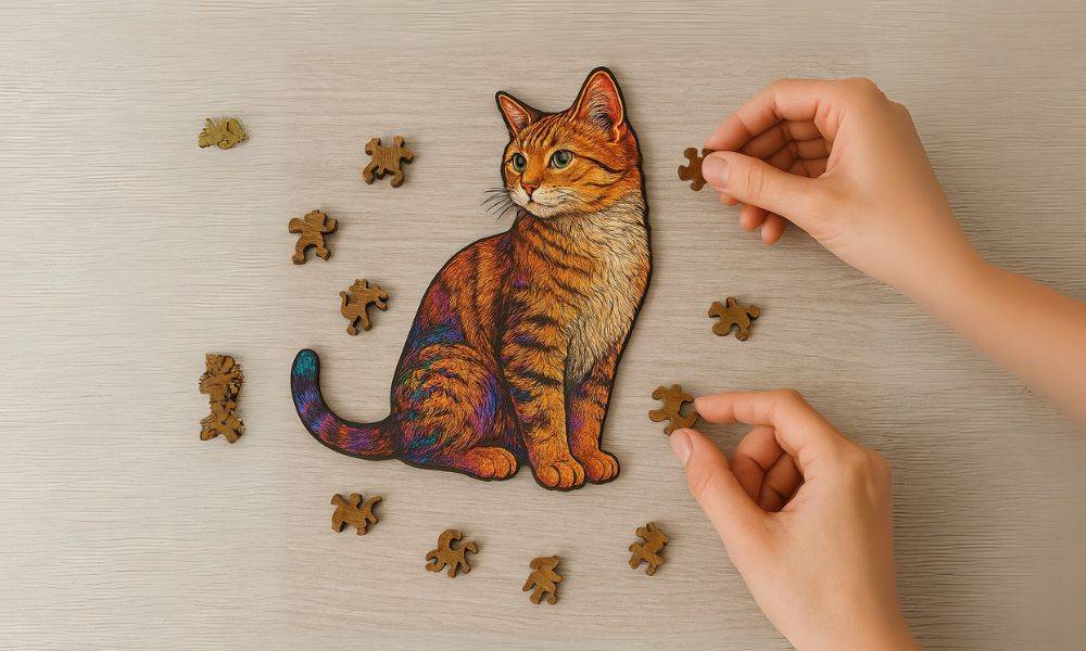 Die Oberfläche ist fein geschliffen, die Teile passgenau und stabil. Beim Zusammensetzen entsteht ein Bild, das nicht nur beschäftigt, sondern auch verzaubert – ein Kunstwerk, das Katzenliebhaber begeistert.