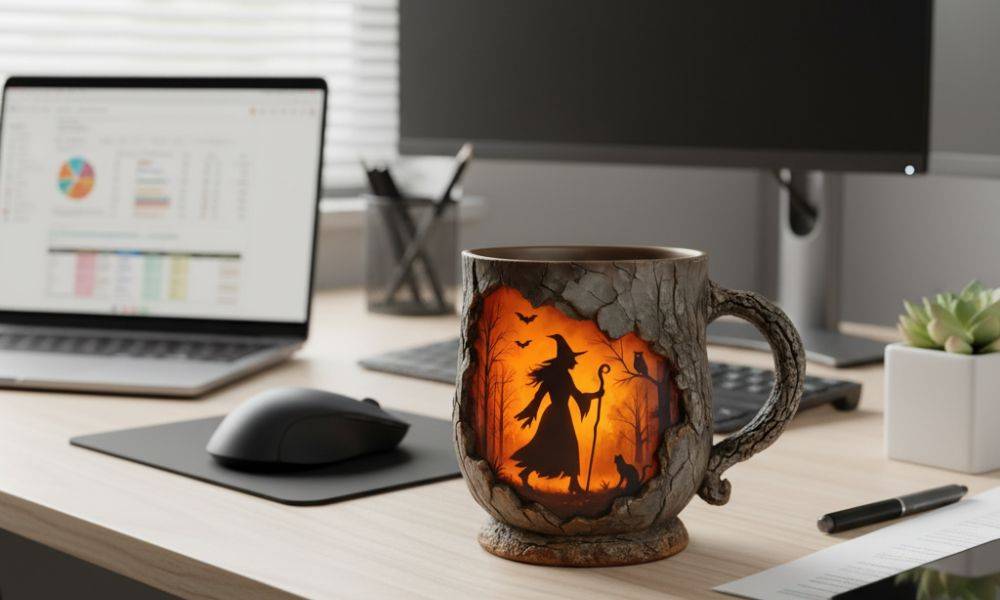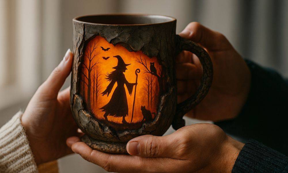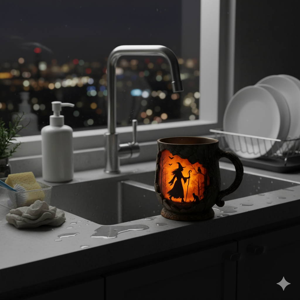 Nach vielen Entwürfen, Details und sorgfältiger Verarbeitung entstand ein Becher, der mehr ist als nur Geschirr – er ist ein kleines Stück Magie für jeden Tag.