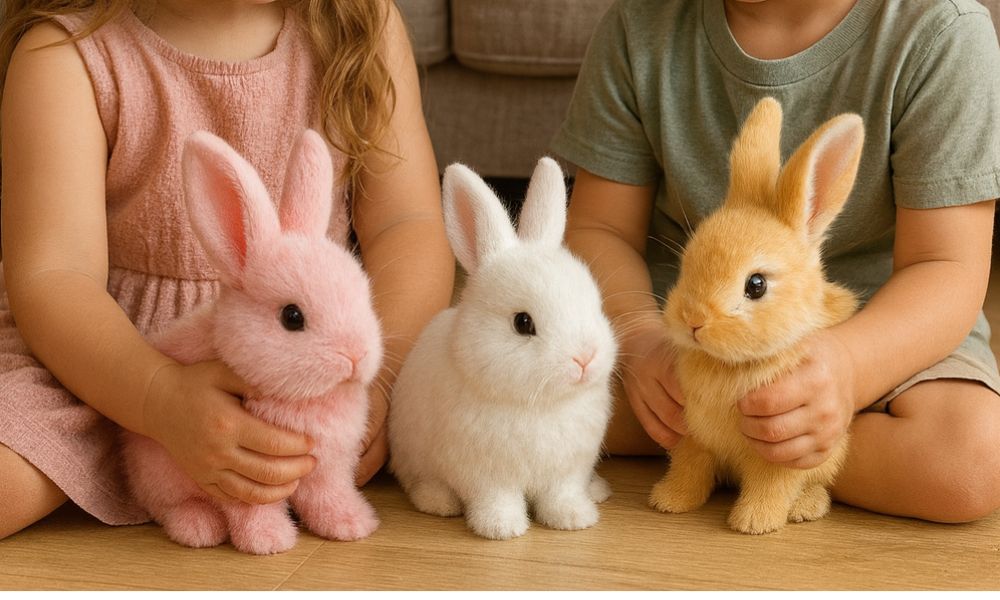 Doch ein echtes Haustier – etwa ein Kaninchen – kommt für viele Familien nicht infrage: Allergien, begrenzter Platz, Verantwortung und laufende Kosten stehen im Weg. Klassische Kuscheltiere sind zwar süß, bieten aber oft wenig mehr als ein kurzes „Oh, wie niedlich“ – ohne echten Mehrwert im Alltag.