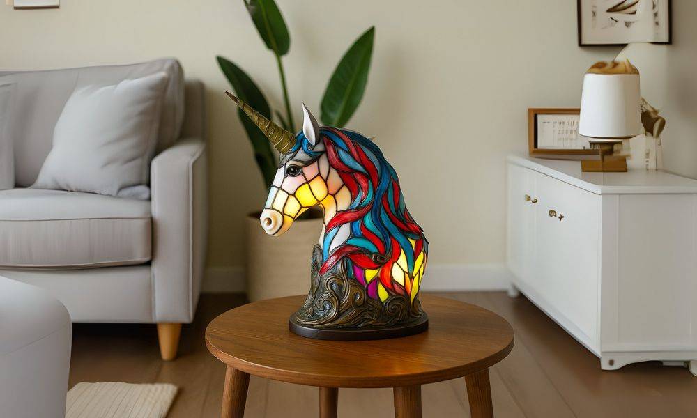 Die glänzende Oberfläche erzeugt je nach Lichteinfall einen schimmernden Effekt, fast wie bemaltes Glas. Ein LeuchtEinhorn ist nicht einfach eine Lampe – es ist ein Kunstwerk, das jedem Raum Charakter gibt.