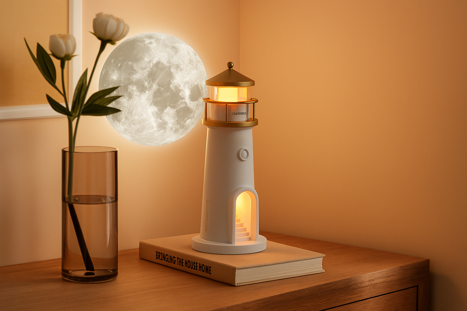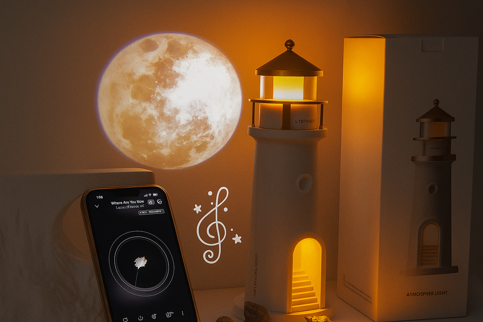 Darin lag die Mondlampe – elegant, geheimnisvoll und wunderschön. Als ich sie einschaltete, füllte ein sanftes, silbriges Leuchten den Raum, das fast so echt wirkte wie das Licht des Mondes selbst. Es war, als hätte jemand ein Stück Nachthimmel und Magie eingefangen, um es in mein Zuhause zu bringen.