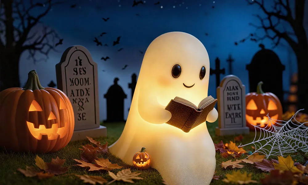 Inspiriert von dieser sanften Seite des Festes entwarfen die Künstler von Gartenstadl einen Geist, wie es ihn noch nie zuvor gab. Der Nachtgeist erschreckt nicht und spukt nicht. Stattdessen sitzt er ruhig da, mit einem Buch in den Händen – als wollte er gleich eine Gutenachtgeschichte erzählen.