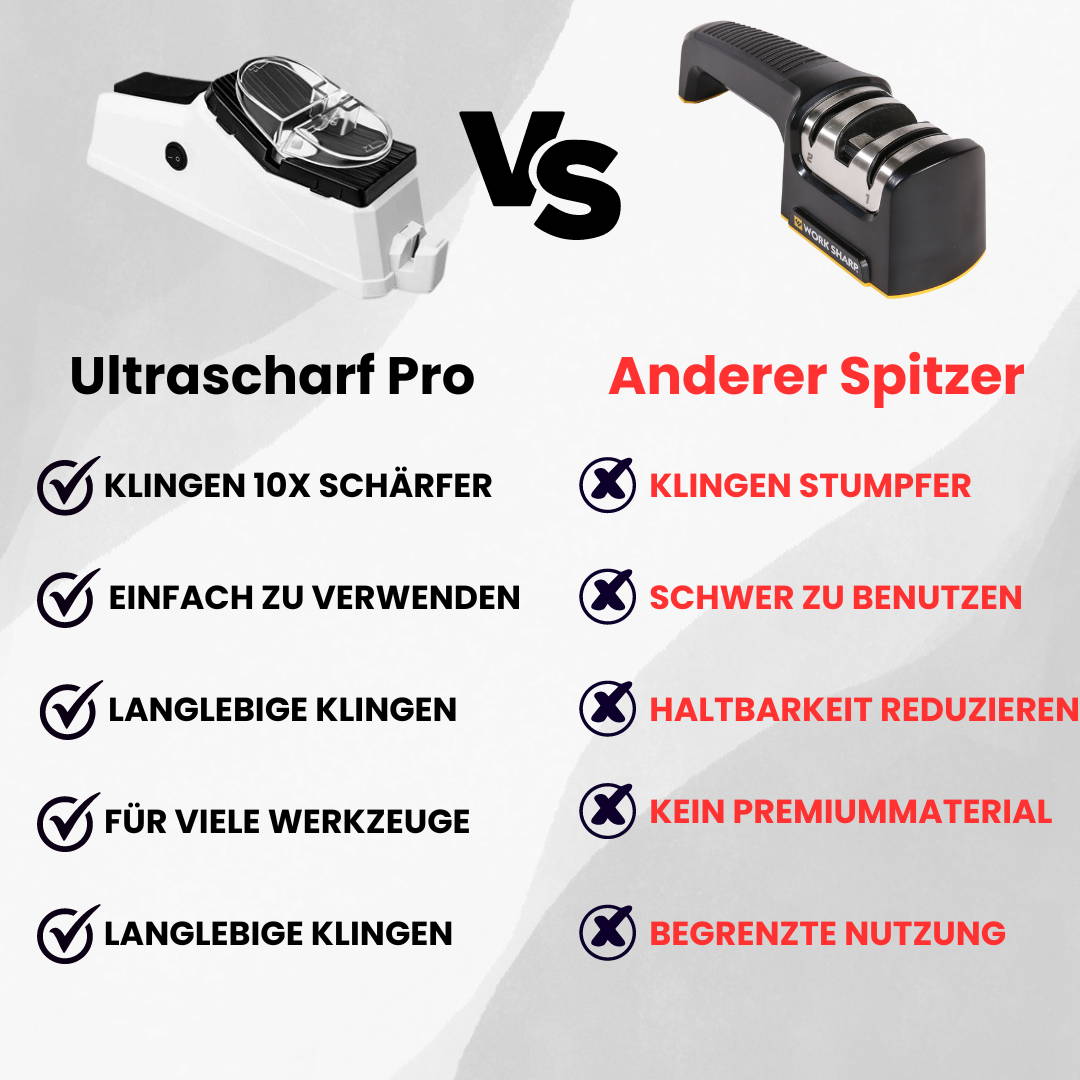 Mit Ultra Sharp sind Ihre Messer immer für jede kulinarische Herausforderung bereit. Stellen Sie sich vor, Sie müssten nie wieder mit einem stumpfen Messer eine Mahlzeit zubereiten. Ultra Sharp schärft Klingen bis zu 10-mal schneller als herkömmliche Schärfer.