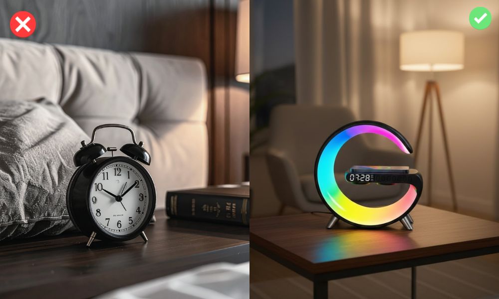 Lautstärke, Licht, Wecker – alles mit sanften Berührungen steuerbar. Keine App-Flut, keine komplizierte Einrichtung.