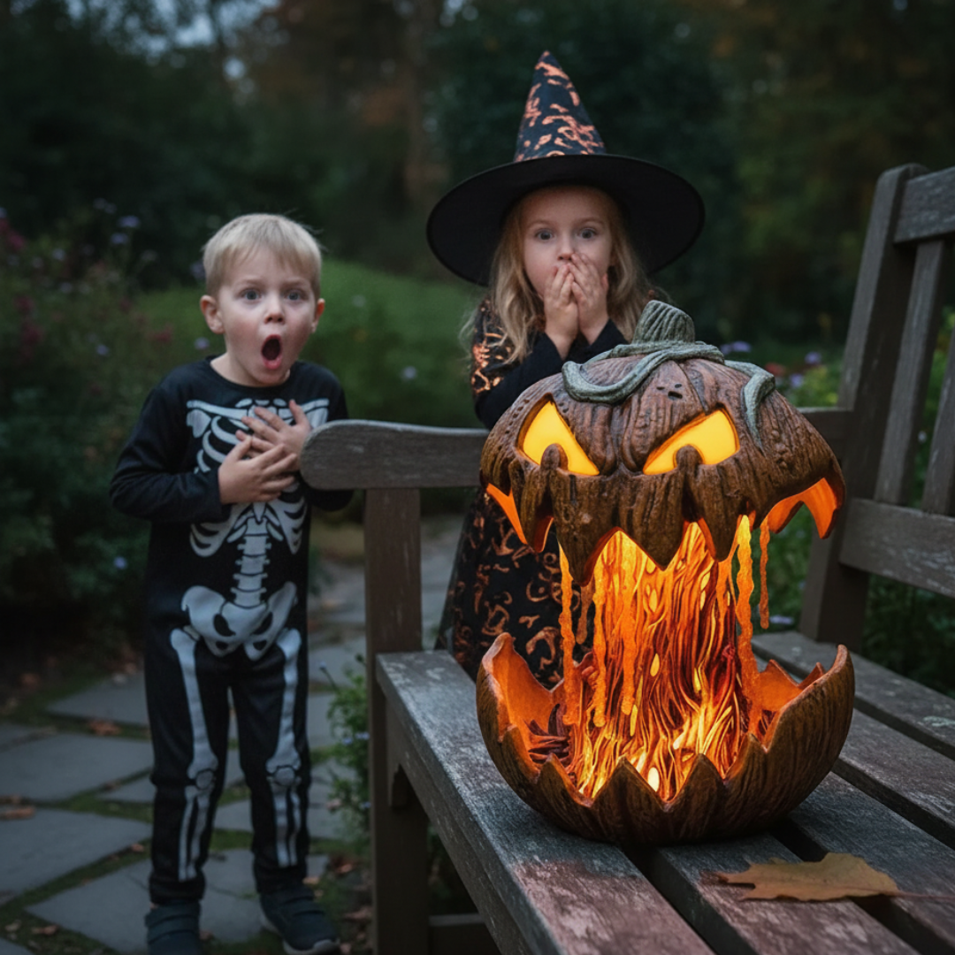 💡 Mit geschnitzter Kürbis-Optik und warmem Leuchten im Inneren – ein echtes saisonales Highlight