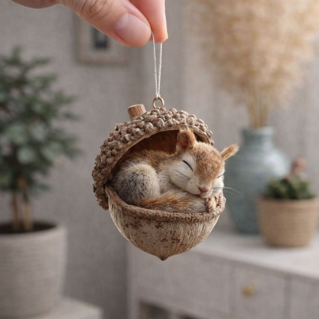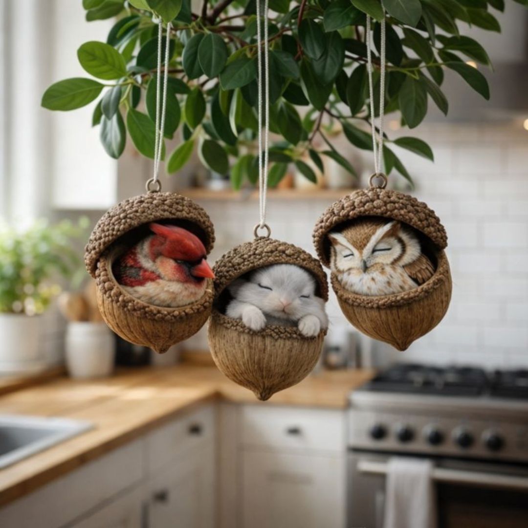 Schlafende Waldfreunde™️ Natürliche, handgemachte Wohn- & Gartendekoration zum Aufhängen bringen die ruhige Magie des Waldes das ganze Jahr über in dein Zuhause. Jede Hängedekoration zeigt ein friedlich schlafendes Waldtier, gebettet in einer liebevoll ausgearbeiteten Eichel. Das natürliche Design strahlt Wärme, Geborgenheit und zeitlose Waldromantik aus – perfekt als Ganzjahresdekoration, unabhängig von Saison oder Anlass.